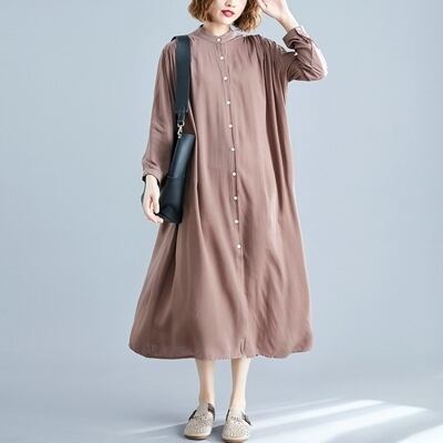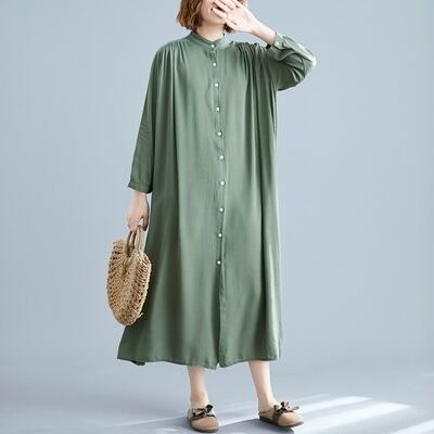 ワンピース ルームウェア ドレス ロング 長袖 ラウンドネック ノーカラー 前開き ボタン 綿 シンプル カジュアル 上品 おしゃれ かっこいい レトロ こなれ感 ガーリー ルーズ 個性的 クール モード系 エレガント モダン 主役級 存在感 フォーマル とろみ感 抜け感 都会的 ラグジュアリー カレッジ風 学生風 ベーシック ロマンティック ナチュラル 無地 ロングシーズン ママ オフィス OL お出かけ リゾート プール レストラン ビーチ 公園 女子会 高原 ガーデン 楽ちん 体型カバー
