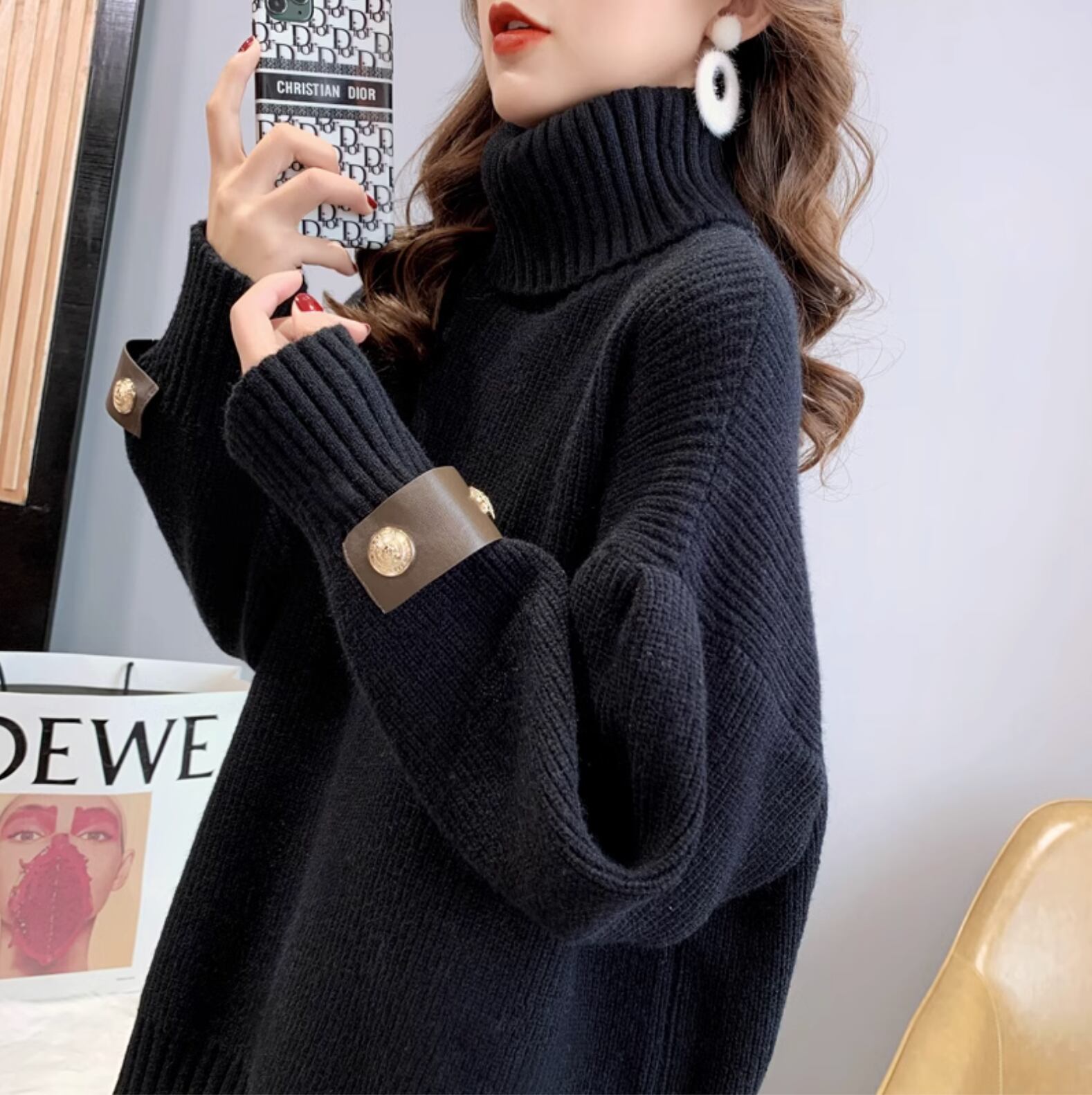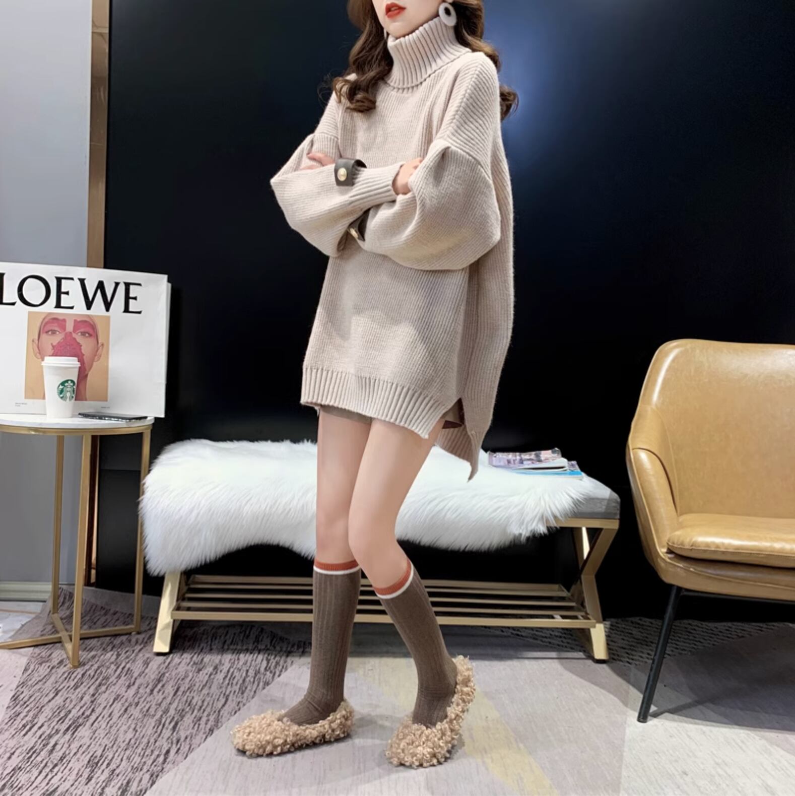 大人可愛いタートルネックのリブニットです。厚手の素材で保温性にも優れており、秋冬にぴったりの一枚です。サイドに入ったスリットで脚長効果も期待できます。ゆったりとしたシルエットで体型もカバーしてくれます。