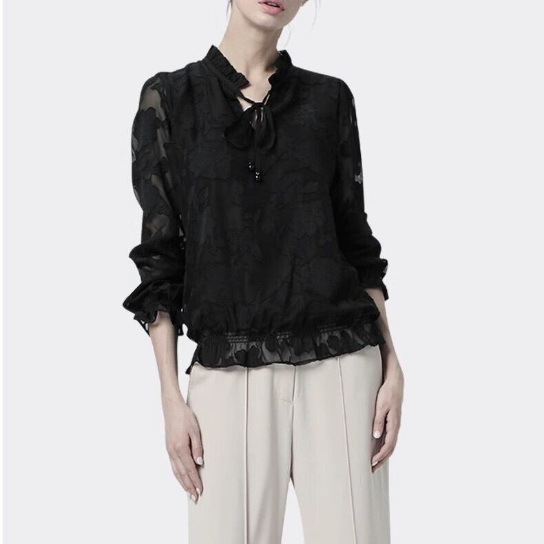 トップス 韓国風 オルチャン 異素材ミックス 切り替えデザイン シャツ ブラウス フェミニン タック入り レース 刺繍 袖あり 長袖 ハイネック リボン ボウタイ ふわふわ ふんわり シフォン 透け感 シースルー パフスリーブ 伸縮性 かわいい 可愛い 大人可愛い ガーリー キュート シンプル カジュアル 大人 上品 エレガント おしゃれ お洒落 大人女子 こなれ感 モード系 モダン 柄 花柄 春 秋 冬 学生 通勤 デート お出かけ お買い物 休日 着回し 韓国 モテ 定番 ブラック 黒 大人カラー