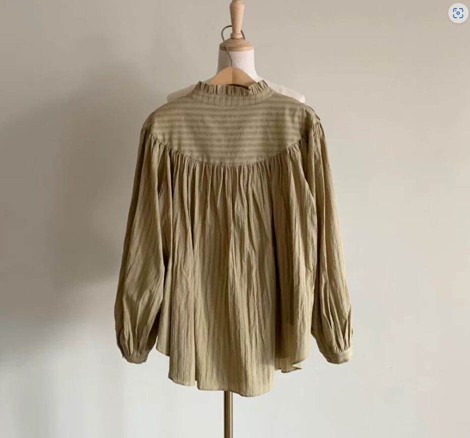 レディース トップス シャツ ブラウス 長袖 ボリューム袖 スタンドカラー 裾ワイド フェミニン タック 透け感 かわいい 大人可愛い シンプル カジュアル おしゃれ ガーリー 存在感 とろみ感 ナチュラル 無地 春 夏 秋 ママ デート お出かけ 旅行 休日 ショッピング カフェ コーデ 楽ちん 普段使い 着回し モテ フリーサイズ 緑 グリーン