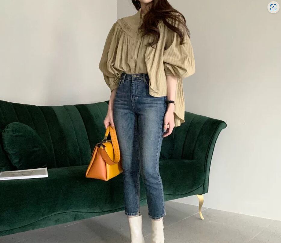 すとんと落ちるような裾にボリューム袖でメリハリのあるシルエットに!