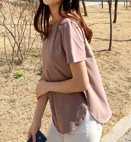 シックなカラーが大人可愛い半袖のミドル丈カットソー。サイドスリットがアクセントになっていて可愛いです。少しゆったりめの作りになっているので暑い夏でもさらっと着られるアイテム。シンプルなので着回し力抜群です。