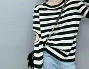 トレンド トップス 韓国風 オルチャン デザイントップス 穴あき 定番 ボーダー カットソー Tシャツ バイカラー 袖あり 長袖 萌え袖 Uネック ラウンドネック 細身 大人可愛い 綺麗め きれいめ シンプル カジュアル 大人カジュアル 大人 上品 おしゃれ お洒落 かっこいい 大人女子 こなれ感 ラフ クール セクシー スタイリッシュ スポーティー 無地 春 夏 秋 お出かけ デート 公園デビュー 休日 アウトドア 女子会 着回し 普段使い 韓国 韓国系 S M L XL サイズ展開 大人カラー