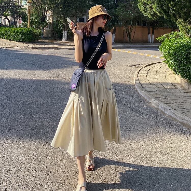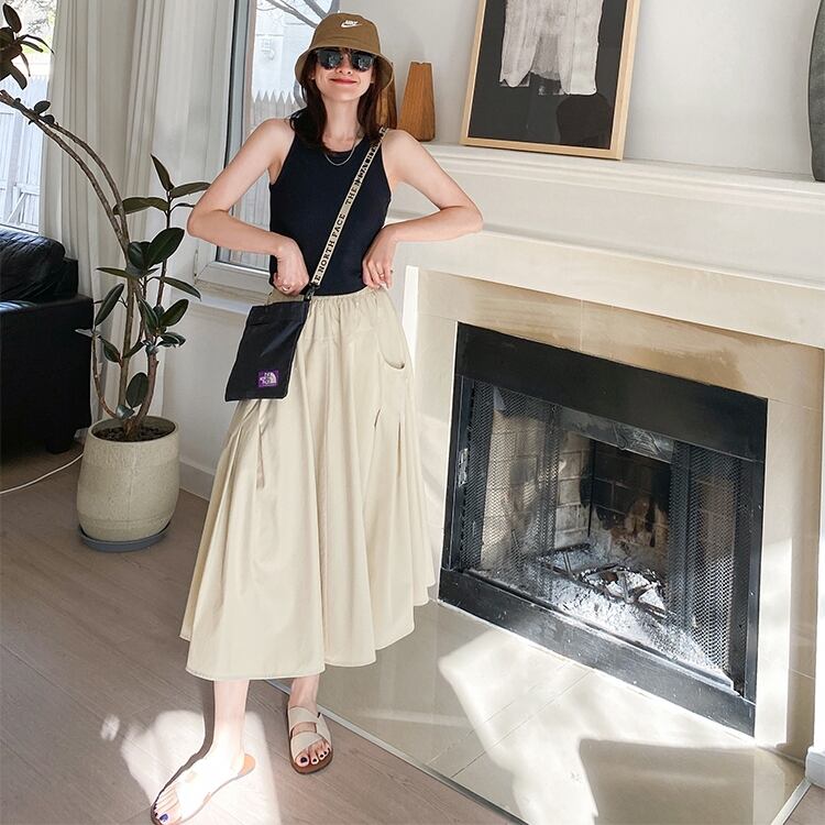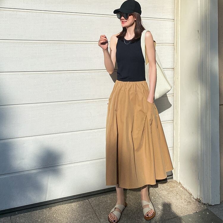 フェミニンで可愛らしいスカートが登場しました!ウエストゴムで楽ちんな着心地でありながら、Aラインのフレアシルエットが女性らしい美しさを引き立てます。シンプルでありながら抜け感があり、どんなスタイルにも合わせやすいアイテムです。
