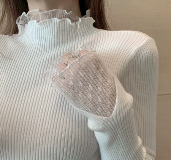 レディース トップス カットソー ミドル丈 長袖 ハイネック タイト スリム 細身 レース フリル 異国風 切り替えデザイン メッシュ かわいい 大人可愛い きれいめ シンプル カジュアル 上品 おしゃれ かっこいい ガーリー 個性的 クール エレガント 存在感 キュート ラグジュアリー シック 高級感 セレブ 女性らしい スタイリッシュ セクシー 春 秋 10代 20代 デート お出かけ 旅行 レストラン 普段使い 着回し モテ S M 小さめ ホワイト ブラック ブルー アプリコット パープル