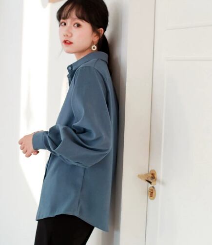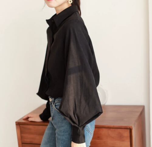 シックなカラーが魅力的な長袖シャツ。ボリュームのあるランタンスリーブがアクセントになっていておしゃれです。シンプルなので着回し力抜群。ジレやベストとの重ね着も◎柄物と相性がいいので、花柄やチェック、水玉模様のボトムスを合わせても可愛いです。