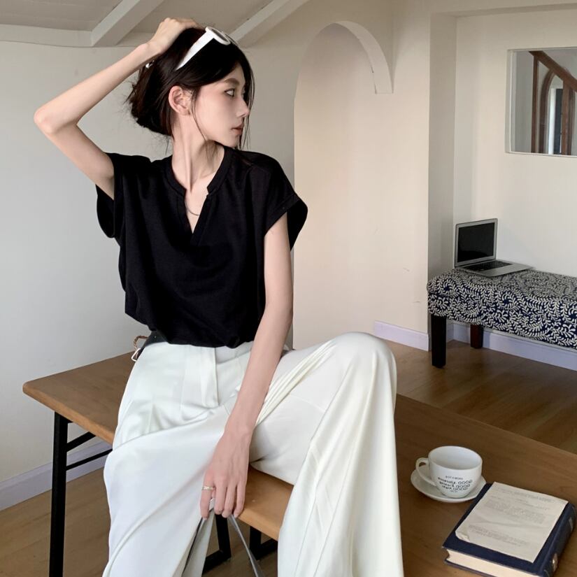 レディース トップス シャツ ブラウス カットソー ミニ ショート 半袖 Vネック 襟なし ノーカラー バルーン 薄手 かわいい 大人可愛い きれいめ シンプル カジュアル おしゃれ かっこいい レトロ アジアン エキゾチック こなれ感 ラフ ルーズ 個性的 クール 主役級 存在感 とろみ感 抜け感 ラブリー キュート 都会的 ベーシック アクティブ ナチュラル ワイルド 無地 夏 デート お出かけ リゾート ビーチ 休日 バカンス ショッピング 脚長 普段使い モテ フリーサイズ ホワイト ブラック