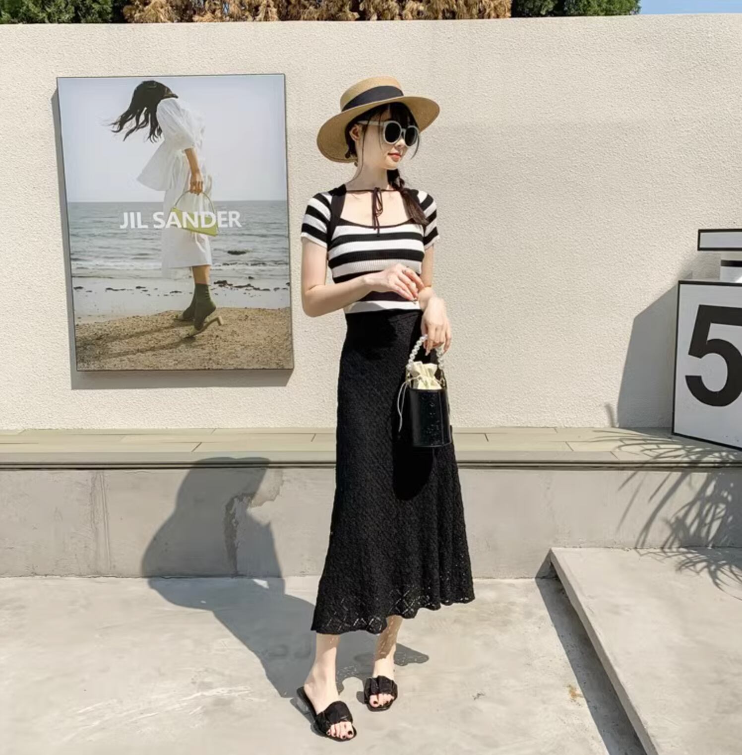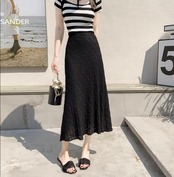 甘くエレガントな印象の総レーススカートです。フィッシュテールのデザインが女性らしさを引き立てます。ハイウエストで脚長効果も抜群。上品な透け感と裏地のついた仕様で、カジュアルからきれいめまで幅広いスタイリングに対応します。