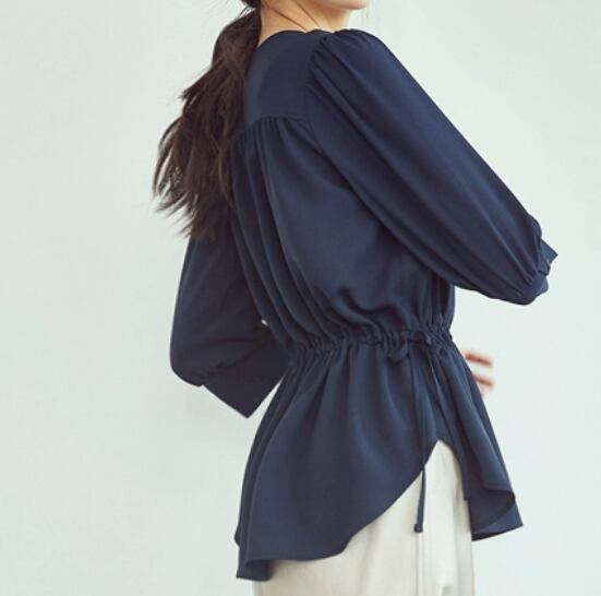 シックなカラーとペプラムデザインが大人可愛いプルオーバートップス。ウエスト部分をきゅっと絞ったような作りになっているので女性らしいくびれを演出。スタイルよく見せてくれるアイテムです。