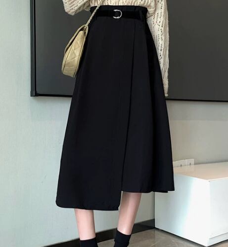 シックな秋カラーが魅力的なミモレ丈のAラインスカート。一定ではないスカートの裾丈がいしゃれなアイテムです。ウエストをベルトでマークするとスタイリングがよりエレガントに。ニットやレースを使ったトップスと相性抜群です。