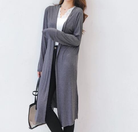 シックな大人カラーが魅力的なロング丈のカーディガン。薄手なので春夏の冷房対策、日焼け防止のアイテムとして重宝します。シンプルなので着回し力抜群。屋内外問わず大活躍間違いなしです。