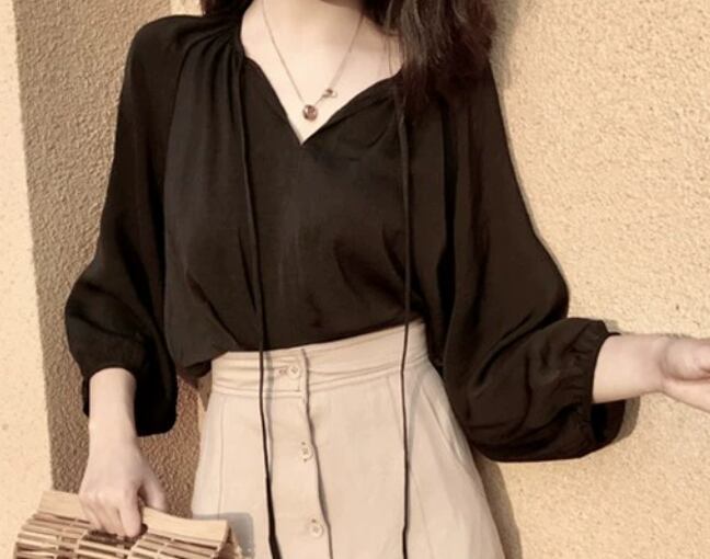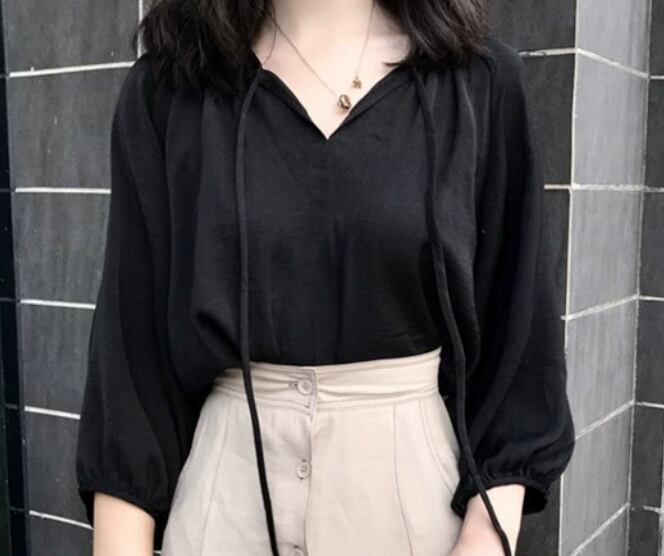 レディース トップス シャツ プルオーバー ミドル丈 7分袖 Vネック シフォン 異国風 かわいい 大人可愛い きれいめ シンプル カジュアル 上品 おしゃれ こなれ感 ラフ ガーリー ルーズ クール エレガント キュート ナチュラル シック 清潔感 爽やか 女性らしい 優しい 無地 春 秋 20代 30代 40代 オフィス OL デート お出かけ 旅行 レストラン 女子会 休日 ショッピング お花見 カフェ 水族館 普段使い 着回し モテ 清楚 S M L XL ゆったり ブラック アプリコット