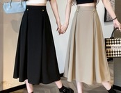 シックなカラーが大人可愛いミモレ丈のAラインスカート。シルエットがとてもきれいなアイテムで、着回し力も抜群です。ベルト通し部分についているハートの形のゴールドボタンがアクセントになっていて可愛いです。