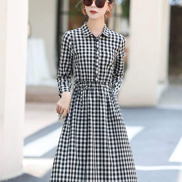 レディース スカート ワンピース シャツワンピ 前開き ロングスカート 膝下 ミモレ 長袖 襟付き 角襟 Aライン リボン ウエストマーク ウエストリボン ハイウエスト ウエストゴム 伸縮性 ボタン 薄手 かわいい 大人可愛い きれいめ シンプル カジュアル 上品 おしゃれ かっこいい レトロ アジアン こなれ感 ラフ ルーズ 個性的 主役級 存在感 とろみ感 抜け感 ラブリー キュート ベーシック ナチュラル チェック 春 秋 デート お出かけ 休日 普段使い モテ 清楚 M L XL 2XL 3XL