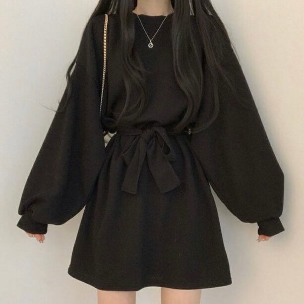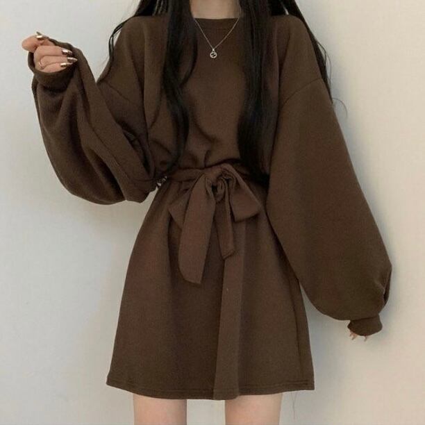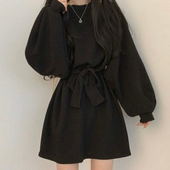 トレンド ワンピース 韓国風 オルチャン スウェット トレーナー ボリュームスリーブ ミニワンピ ワンピ ショート ショート丈 袖あり 長袖 萌え袖 萌袖 ウエストマーク リボン くびれ スタイルアップ Aライン 大人可愛い きれい シンプル カジュアル 大人 大人カジュアル 上品 おしゃれ お洒落 かっこいい 大人女子 モダン 春 秋 冬 S M L XL サイズ展開 大きいサイズ ゆったり オーバーサイズ レディース デート お出かけ 女子会 休日 韓国 韓国系 ファッション コーデ スタイル モテ