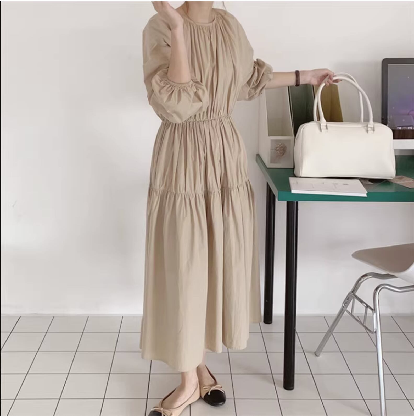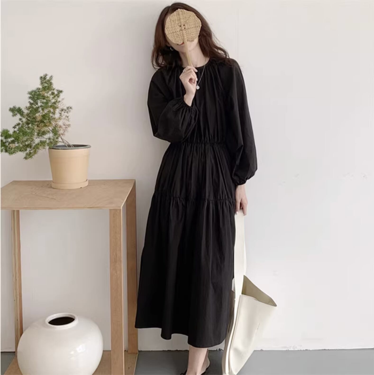 レディース ワンピース ティアード ロング 長袖 パフスリーブ ラウンドネック フェミニン プリーツ ボタン 切り替えデザイン かわいい 大人可愛い きれいめ シンプル カジュアル 上品 おしゃれ レトロ こなれ感 ラフ ガーリー ルーズ エレガント キュート 無地 春 秋 オフィス ビジネス OL 通勤 デート お出かけ お泊まり パーティー イベント リゾート 旅行 女子会 休日 バカンス コーデ 楽ちん 体型カバー 普段使い 着回し S M L XL ゆったり ゆる ブラック ベージュ