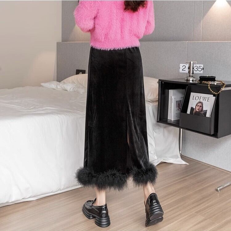 レディース スカート タイトスカート ロングスカート ファー 膝下 くるぶし丈 ミモレ タイト スリム ストレート Iライン スリット バックスリット ハイウエスト ウエストゴム かわいい 大人可愛い きれいめ シンプル カジュアル 上品 おしゃれ かっこいい レトロ アジアン こなれ感 ラフ ルーズ 個性的 クール エレガント 主役級 存在感 とろみ感 ベーシック ナチュラル 無地 秋 冬 デート 休日 女子会 お出かけ レストラン カフェ コーデ 楽ちん 普段使い S M L XL ブラック 黒