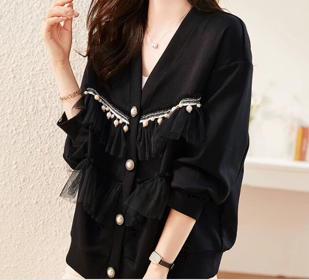 レディース トップス カーディガン ミドル丈 長袖 Vネック フェミニン フリル 異国風 切り替えデザイン パール チュール かわいい 大人可愛い きれいめ カジュアル 上品 おしゃれ かっこいい ガーリー 個性的 エレガント 存在感 キュート ラグジュアリー シック 高級感 芸術的 セレブ 華やか ユニーク 女性らしい 優しい スタイリッシュ 春 秋 20代 30代 40代 50代 デート お出かけ 普段使い 着回し モテ 清楚 L XL 2XL 3XL 4XL 大きいサイズ ブラック グレー