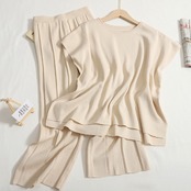 軽やかな素材で作られたレディース2点セットアップ。半袖のUネックトップスとパンツがセットになった、フェミニンで可愛らしいデザインが特徴です。薄手の生地で風通しも良く、春夏のカジュアルなコーディネートにピッタリ。シンプルなデザインなので、一枚でさらっと着るだけでもお洒落なコーディネートが完成します。バルーンシルエットのトップスとワイドパンツの組み合わせが抜け感を演出し、女性らしい上品さもプラスしてくれます。さらに、サイズによらずワンサイズで着用できるので、着用感や柔軟性の面でストレスを感じることはありません。さまざまなシーンで活躍する上下セットアップですので、普段使いやオフィスカジュアルにも最適です。ライトグリーン、ブラウン、ホワイト、ブラックの4色からお選びいただけます。清潔感溢れる華やかなコーディネートを楽しんでください。