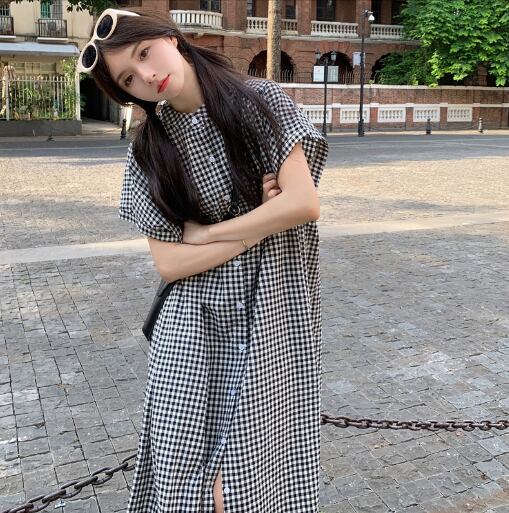 ワンピース 膝下 ロング ロング丈 半袖 ラウンドネック 襟なし フレア ワイド Aライン ギンガムチェック かわいい 大人可愛い シンプル カジュアル 大人 上品 レトロ 大人女子 こなれ感 キュート ガーリー ルーズ セクシー 抜け感 夏 レディース 女性用 デート お出かけ 女子会 お泊まり 休日 イベント リゾート 旅行 海 プール ガーデン 着回し 普段使い 楽ちん 体系カバー 脚長 大きい 大きめ ビッグサイズ ゆったり ゆる S M L XL 2XL 3XL 4XL ブラック