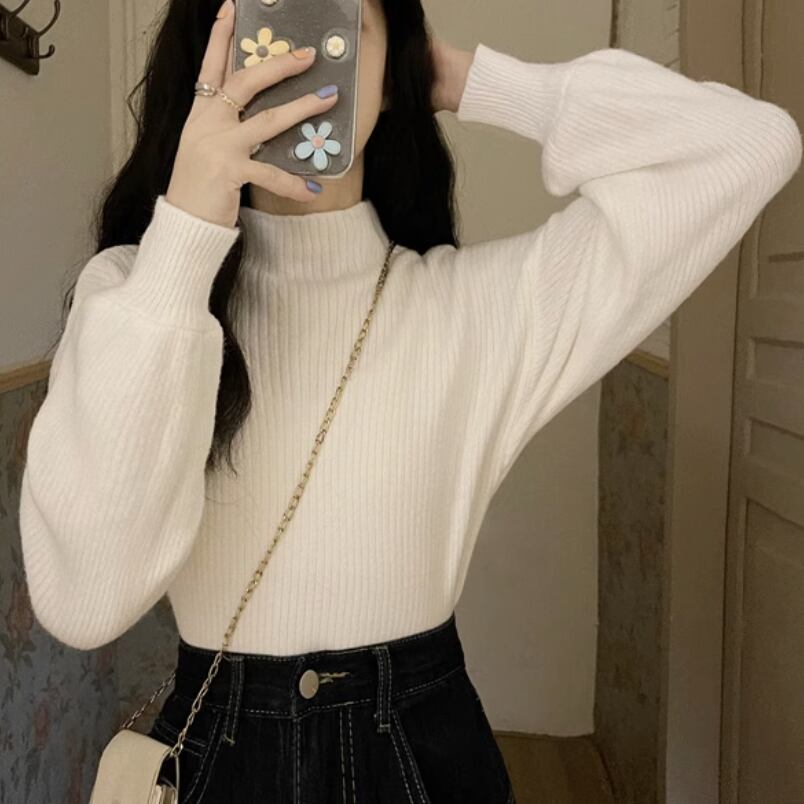 レディース トップス ニット セーター 長袖 ボリューム袖 ハイネック ストレート もこもこ ふわふわ ふっくら 伸縮性 中厚手 かわいい 大人可愛い きれいめ シンプル カジュアル 上品 おしゃれ かっこいい レトロ こなれ感 ラフ ルーズ 個性的 クール 主役級 存在感 とろみ感 抜け感 ラブリー キュート 都会的 ベーシック ナチュラル 無地 秋 冬 デート お出かけ 女子会 休日 ショッピング 合コン コンパ カフェ コーデ 楽ちん 暖かい 体型カバー 普段使い モテ 清楚 定番 S M L ゆる