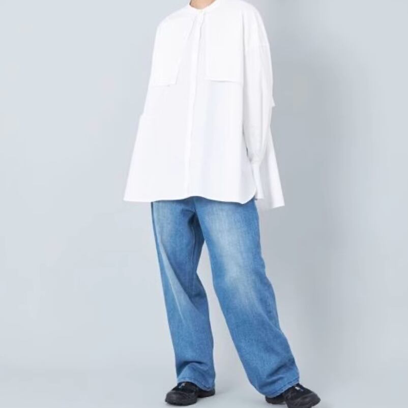 レディース トップス シャツ ブラウス ロング 長袖 ボリューム袖 萌袖 ラウンドネック 襟なし ワイド オーバーサイズ フェミニン 異国風 薄手 かわいい 大人可愛い きれいめ シンプル カジュアル 上品 おしゃれ かっこいい レトロ こなれ感 ラフ ルーズ 個性的 エレガント モダン 主役級 存在感 とろみ感 抜け感 都会的 ナチュラル 無地 春 秋 お出かけ リゾート 女子会 休日 お花見 カフェ コーデ 楽ちん 体型カバー 普段使い 清楚 大きいサイズ ゆったり ゆる フリーサイズ ホワイト