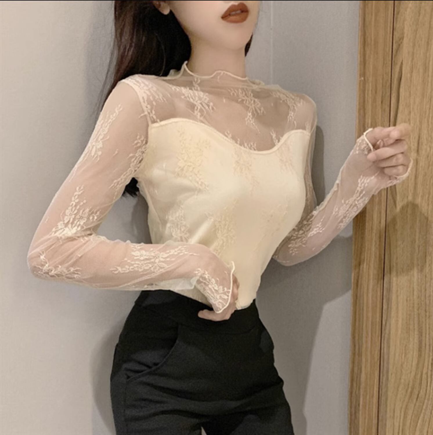 インナー レディース トップス ブラウス 肌隠し 長袖 ハイネック タートルネック フェミニン レース 透け感 シースルー かわいい 大人可愛い きれいめ シンプル カジュアル 上品 おしゃれ レトロ こなれ感 ガーリー エレガント ラブリー キュート 花柄 秋 冬 デート お出かけ お泊まり アウトドア パーティー イベント リゾート 旅行 女子会 休日 ショッピング ホテル 重ね着 暖かい 防寒 保温 普段使い 着回し レイヤード S M L XL ホワイト ブラック アプリコット ベージュ