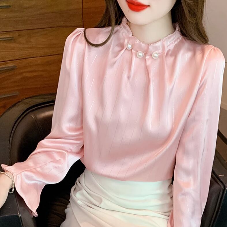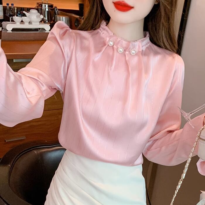 レディース トップス ブラウス 長袖 萌袖 フリル袖 ハイネック 細身 フェミニン 異国風 薄手 かわいい 大人可愛い きれいめ シンプル 上品 おしゃれ かっこいい レトロ アジアン エキゾチック こなれ感 ラフ ルーズ 個性的 モード系 エレガント 主役級 存在感 とろみ感 抜け感 ラブリー キュート 都会的 ロマンティック 無地 春 秋 デート パーティー レストラン 女子会 ホテル 発表会 合コン コンパ 婚活 コーデ 体型カバー モテ 清楚 S M L XL 2XL ゆる ピンク アプリコット