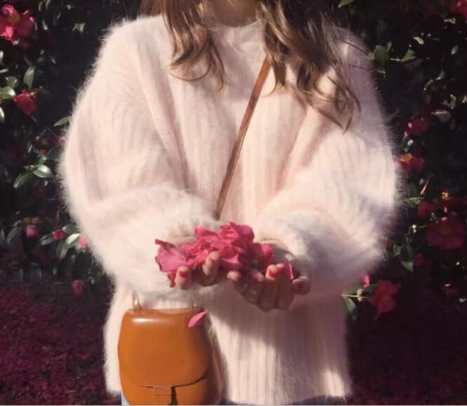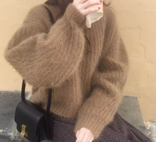 優しげなカラーが女性らしい暖かいウールセーター。秋から冬の寒い季節に重宝するアイテムです。シンプルなので着回し力抜群。柄物と相性がいいのでチェック柄や花柄のボトムスにも良く合います。