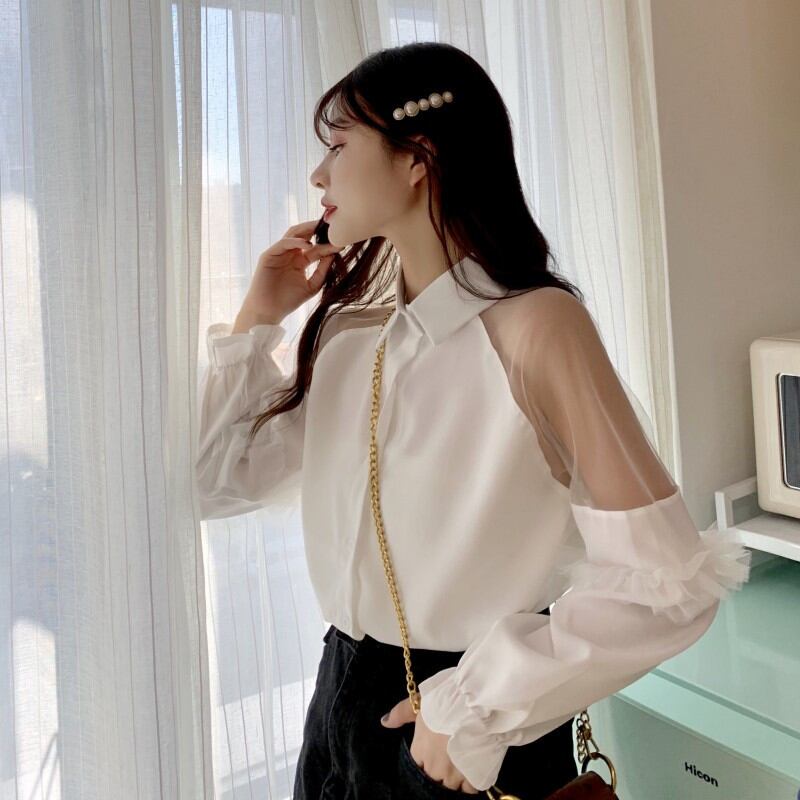 レディース トップス シャツ ミドル丈 長袖 袖透け感 オフショルダー風デザイン 襟付き ストレート かわいい 大人可愛い きれいめ シンプル カジュアル 上品 レトロ メンズライク ガーリー 個性的 ラブリー キュート 無地 春 秋 学生 デート お出かけ 休日 モテ トレンド 流行 インスタ映え フリーサイズ 白 ホワイト