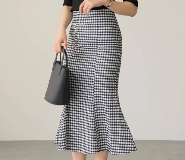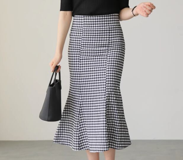 レディース スカート ボトムス マーメイドスカート フィッシュテールスカート ミモレ スリム 細身 マーメイド フリル ハイウエスト 薄手 かわいい 大人可愛い きれいめ カジュアル 上品 おしゃれ ガーリー クール エレガント キュート シック 女性らしい 知的 スタイリッシュ セクシー チェック 格子柄 春 夏 20代 30代 40代 50代 60代 デート お出かけ 旅行 海 レストラン 女子会 休日 ショッピング お花見 普段使い 着回し モテ S M L XL 2XL 小さめ ホワイト