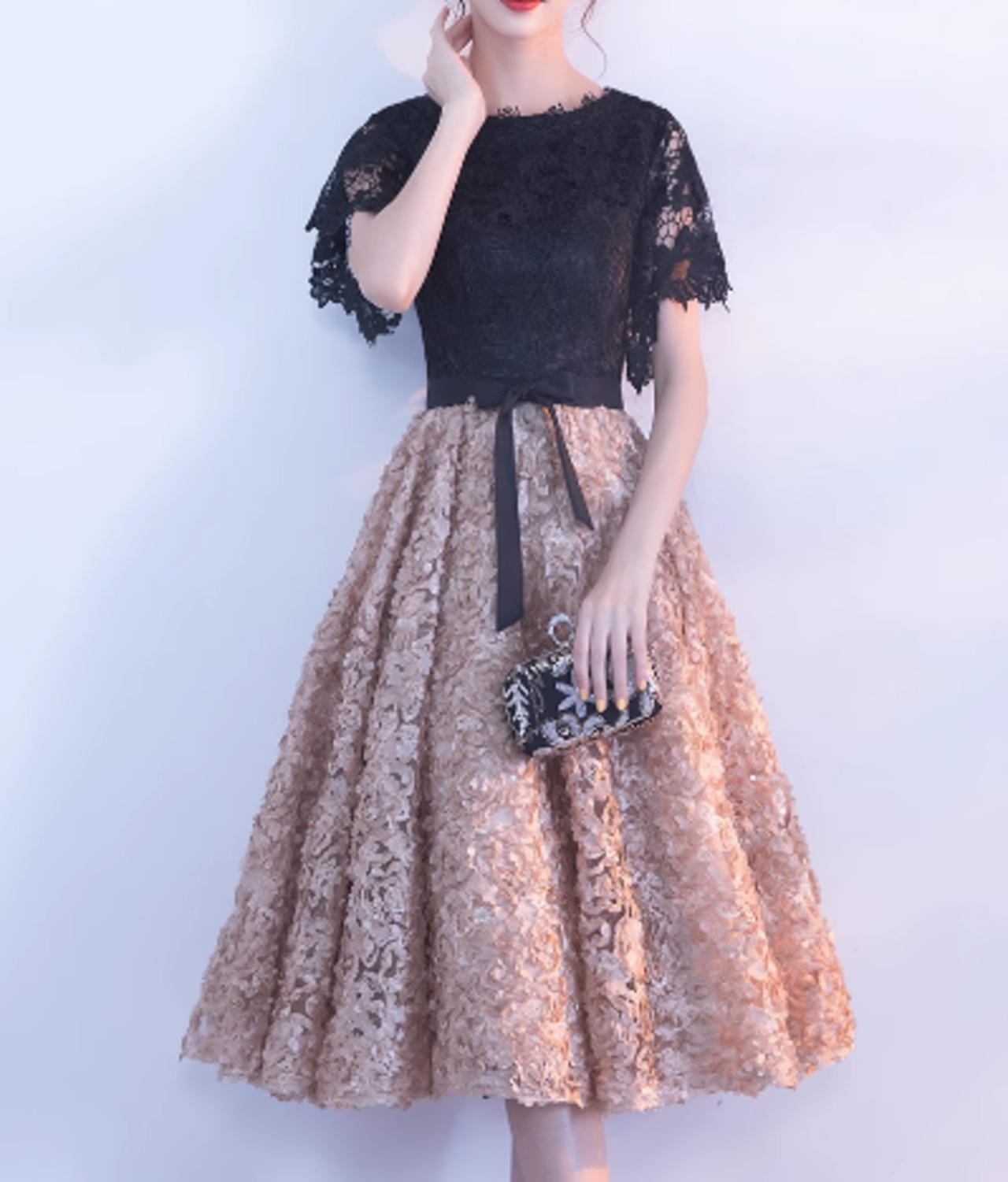 レディース ドレス イブニングドレス ウェディング パーティー 結婚式 二次会 披露宴 演奏会 発表会 演劇 ラウンジ ミモレ 半袖 ラウンドネック スレンダー スリム フレア 細身 レース 切り替えデザイン ドッキング ファスナー 可愛い きれいめ カジュアル 大人可愛い 上品 おしゃれ キュート ガーリー エレガント 花柄 フラワー イベント ホテル レストラン ドライブ 夜景 バー ショッピング 誕生日 記念日 高見え 女子会 モテ 春 夏 XS 2XL S M L XL 小さめ ブラック