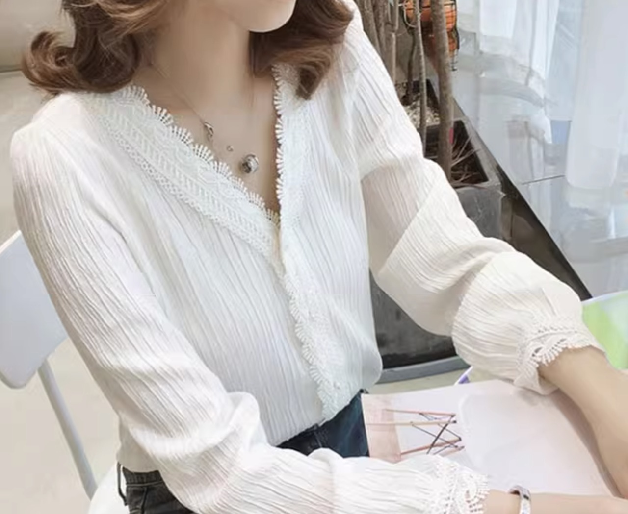 程よいゆったり感がこなれた雰囲気のフェミニンな長袖トップス。Vネックなのでネックレスと相性抜群です。ボリューム感のある袖がキュートで、繊細なレースがおしゃれ。パンツスタイルにして甘辛コーデを楽しんでも◎