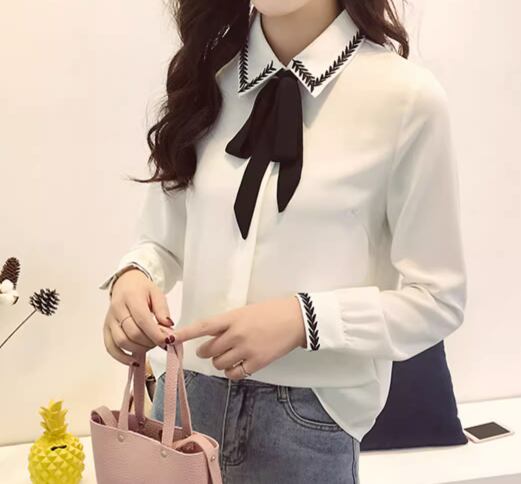 レディース トップス シャツ ミドル丈 長袖 襟付き 角襟 ポロカラー ストレート 刺繍 リボン 異国風 かわいい 大人可愛い きれいめ シンプル カジュアル 上品 おしゃれ ガーリー エレガント キュート ラグジュアリー クラシカル カレッジ風 シック 高級感 芸術的 清潔感 女性らしい 優しい 知的 スタイリッシュ 春 秋 10代 20代 デート お出かけ 旅行 レストラン 女子会 休日 ショッピング お花見 普段使い 着回し モテ 清楚 S M L ホワイト ブルー アプリコット