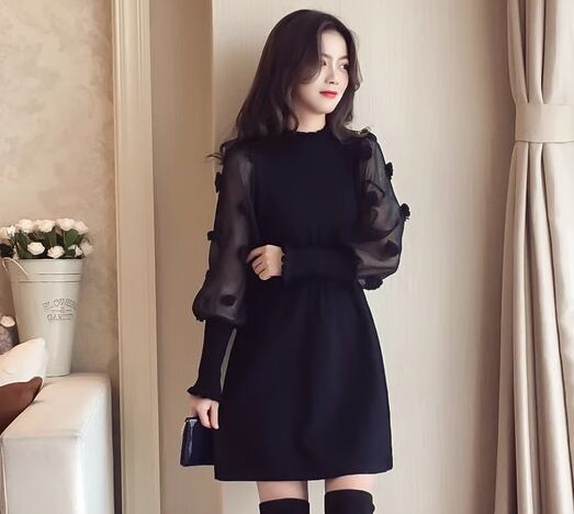 シックなブラック×程よい透け感がセクシーでキュートなワンピース。袖の部分だけ透けているので上品さもあり、黒でも重たい雰囲気にならず女性らしさ満点のアイテムです。ロングブーツと相性抜群。アクセサリーをプラスすると一気に華やかな印象に。