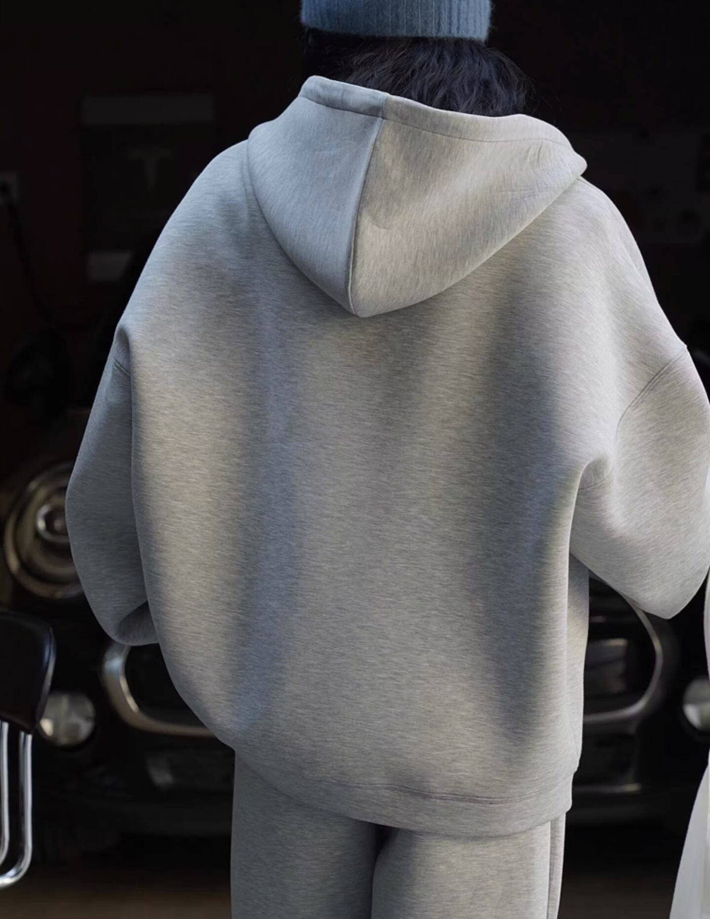 カジュアルな装いにぴったりなリラックス感たっぷりのフード付きパーカーです。シンプルな無地で、どんなコーディネートにも合わせやすいです。定番のホワイトとグレーカラーは、着回し力も高く、秋冬のワードローブに必須のアイテムです。