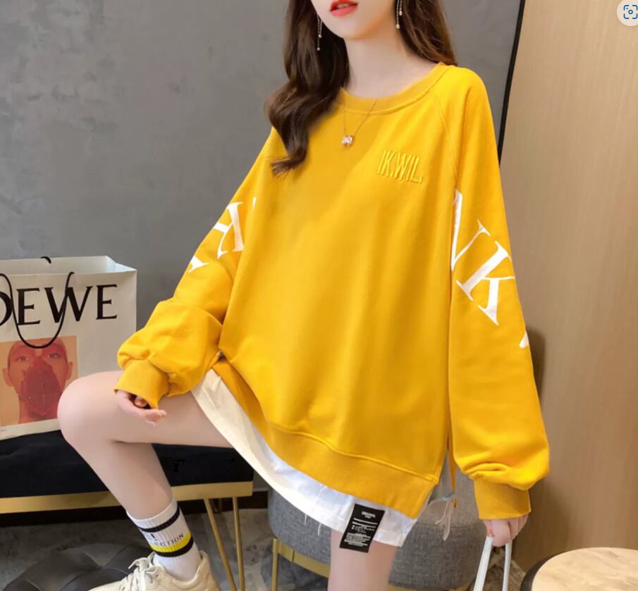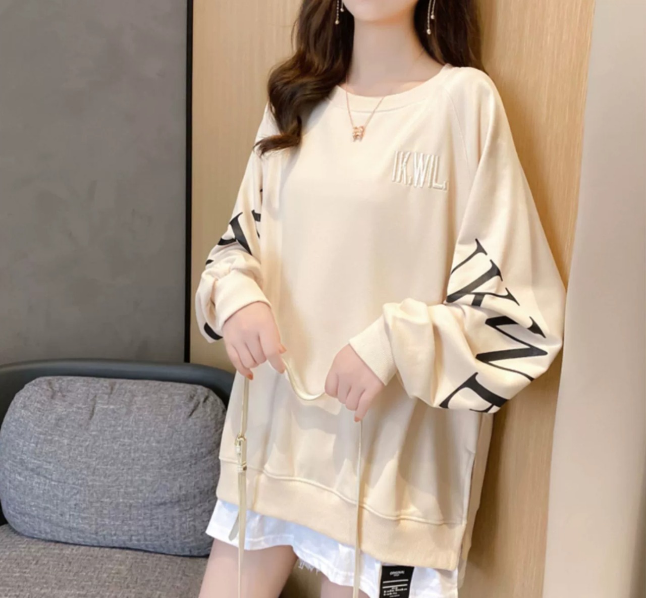 レディース トップス プルオーバー 長袖 ラウンドネック ワイド 刺繍 サイドスリット レイヤード 重ね着風 伸縮性 かわいい シンプル カジュアル おしゃれ かっこいい レトロ ラフ スポーティー 存在感 無地 ロゴ 春 秋 学生 通学 お出かけ 休日 ショッピング お揃い 双子 コーデ 楽ちん 体型カバー 普段使い 着回し M L XL 2XL ゆったり ゆる 黒 ブラック 黄色 イエロー オレンジ ブルー アプリコット