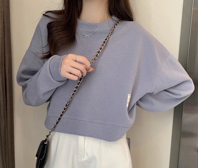 レディース トップス プルオーバー トレーナー スウェット 部屋着 ショート クロップド丈 長袖 ラウンドネック 薄手 かわいい シンプル カジュアル おしゃれ ラフ ボーイッシュ ガーリー ルーズ キュート ナチュラル シック 女性らしい 優しい リラックス 無地 春 秋 デート お出かけ イベント 旅行 レストラン 女子会 休日 ショッピング 韓国 楽ちん 体型カバー 普段使い 着回し トレンド 流行 ビッグ ゆったり フリーサイズ オーバーサイズ 大きめ イエロー ピンク ブルー アプリコット