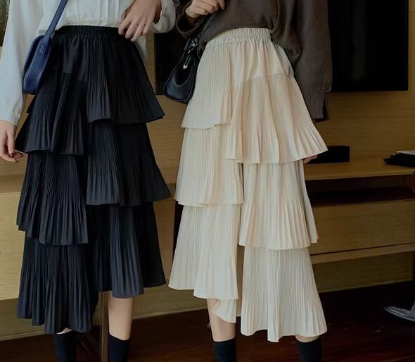 レディース スカート ボトムス ケーキスカート ミモレ ミドル丈 フレア Aライン プリーツ ハイウエスト ウエストゴム ストレッチ 伸縮性 かわいい 大人可愛い きれいめ カジュアル 上品 おしゃれ かっこいい ガーリー 個性的 エレガント 主役級 存在感 ラブリー キュート プリンセス ラグジュアリー シック 高級感 芸術的 セレブ 華やか 女性らしい スタイリッシュ 無地 春 秋 デート お出かけ お揃い 双子 韓国 楽ちん 体型カバー 普段使い 着回し モテ フリーサイズ ブラック アプリコット
