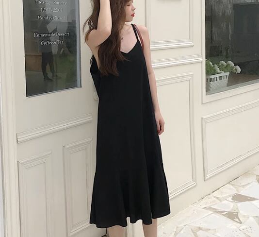 レディース ワンピース プルオーバー キャミワンピース フィッシュテールスカート サスペンダースカート ミモレ 袖なし ノースリーブ Vネック Aライン フリル ヴィンテージ かわいい 大人可愛い きれいめ シンプル カジュアル 上品 おしゃれ ラフ ガーリー ルーズ クール エレガント キュート シック 高級感 セレブ 清潔感 女性らしい スタイリッシュ セクシー 無地 夏 10代 20代 学生 デート お出かけ 重ね着 韓国 楽ちん 体型カバー 普段使い 着回し S M L XL ゆったり ブラック