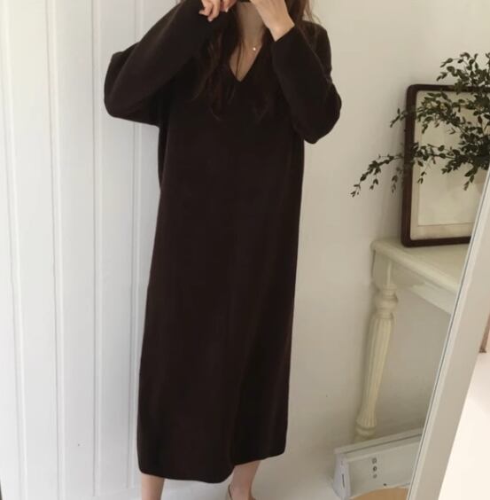 レディース ワンピース ニットワンピ ロング 長袖 Vネック かわいい 大人可愛い シンプル カジュアル ラフ ガーリー ルーズ クール キュート ナチュラル シック 女性らしい リラックス 無地 秋 冬 クリスマス バレンタイン デート お出かけ イベント 旅行 レストラン 女子会 休日 ショッピング コンサート ライブ カフェ 食べ歩き イルミネーション 散歩 楽ちん 体型カバー 普段使い ビッグ ゆったり フリーサイズ オーバーサイズ 大きめ ブラック ブラウン ブルー アプリコット 秋カラー