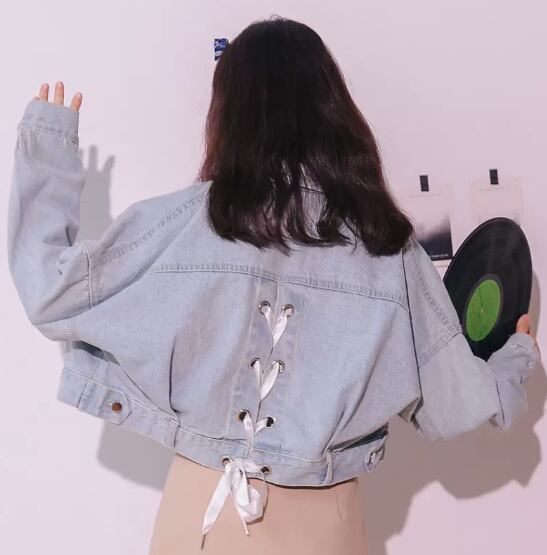 レディース ジャケット ブルゾン 上着 デニム デニムジャケット Gジャン ショート 長袖 ドロップショルダー 萌袖 襟付き バックリボン バックコンシャス レースアップ デニム かわいい 大人可愛い シンプル カジュアル おしゃれ かっこいい こなれ感 ラフ ボーイッシュ スポーティー ガーリー ルーズ アクティブ 無地 春 秋 学生 通学 デート お出かけ 旅行 公園 休日 ショッピング 重ね着 普段使い 着回し 定番 S M L ゆったり 黒 ブラック ライトブルー
